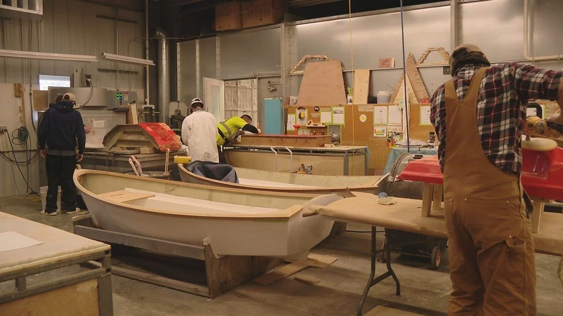 Glassing an Adirondack Guideboat; student video resumes; early enrollment incentives; hull smash.